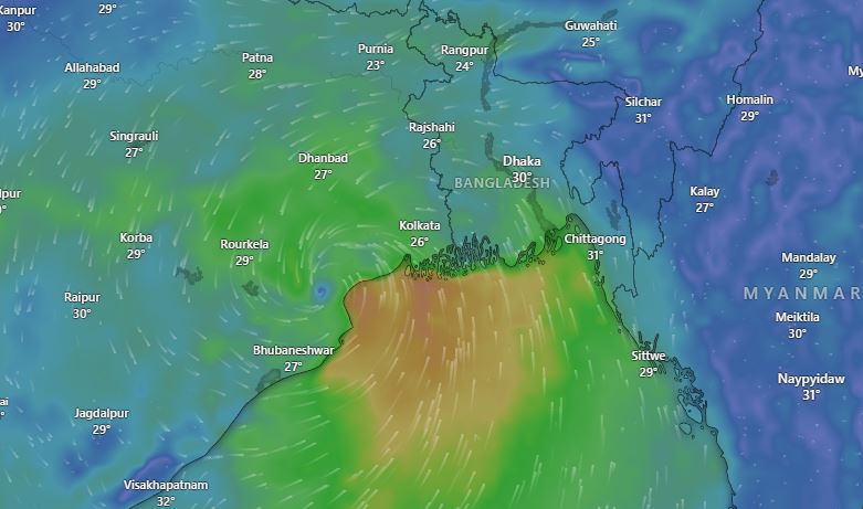ভারতীয় আবহাওয়া দপ্তরের বরাত দিয়ে আনন্দবাজার পত্রিকা লিখেছে, বর্তমানে উপকূল এলাকায় ঘণ্টায় ৯০ থেকে ১০০ কিলোমিটার বেগে ঝড় বইছে। শক্তি হারিয়ে তা এখন ‘সাধারণ’ ঘূর্ণিঝড়ে পরিণত হয়েছে। বিকালের মধ্যে আরও কিছুটা শক্তিক্ষয় করে গভীর নিম্নচাপে পরিণত হবে ‘দানা’।
