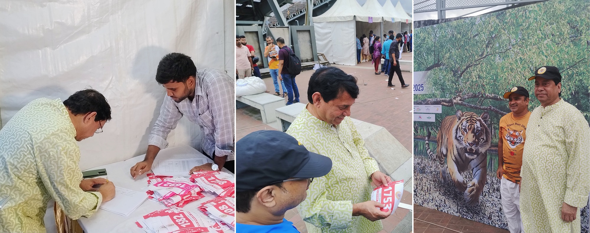 এরপর নির্ধারিত বুথের সামনে লাইনে দাঁড়িয়ে বিব নম্বর, কিটব্যাগ এবং টিশার্ট সংগ্রহ করেন দেশে বাঘ রক্ষায় সচেতনতা গড়ার ব্যতিক্রমী এই ম্যারাথনের উদ্যোগ নেয়া মুকিত মজুমদার।