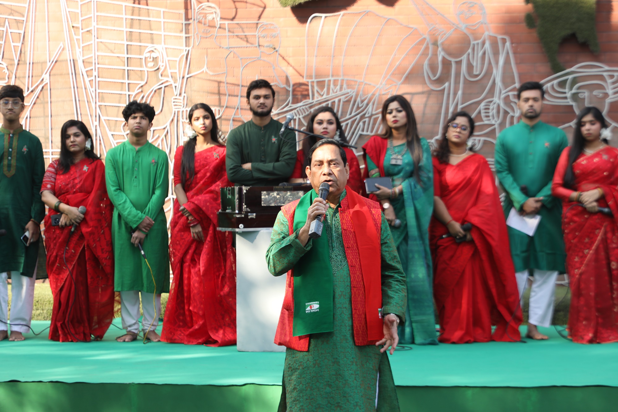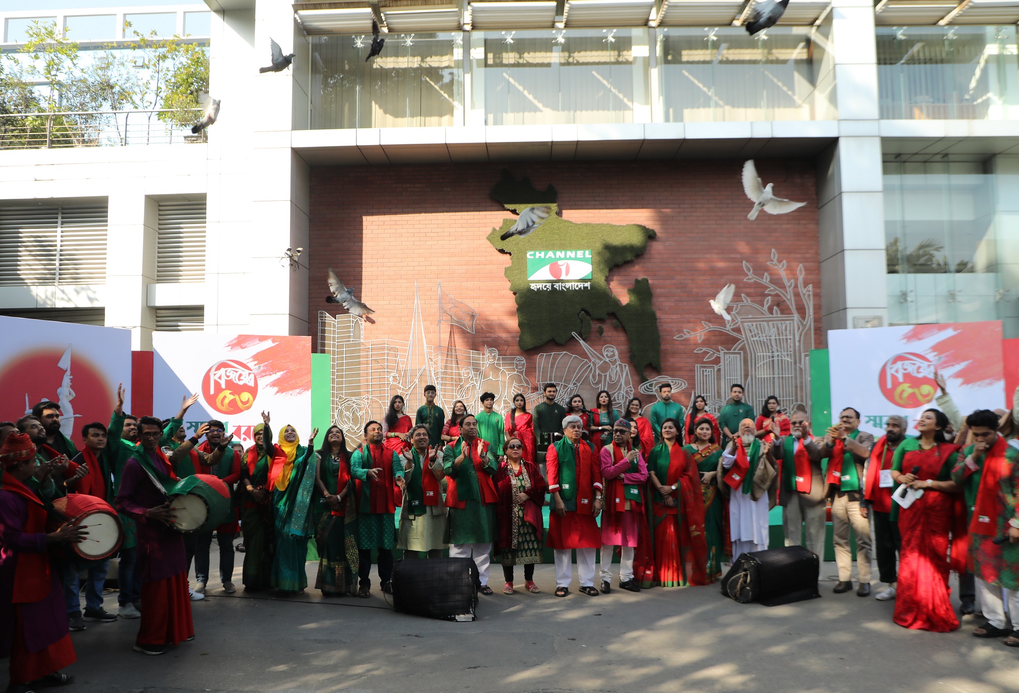 এরপর চ্যানেল আইয়ের চেতনা চত্বরের অস্থায়ী মঞ্চে লাল-সবুজ বসনে শিল্পীরা গানে গানে সুরের মুর্ছনায় মাতান বিজয়ের সকাল।