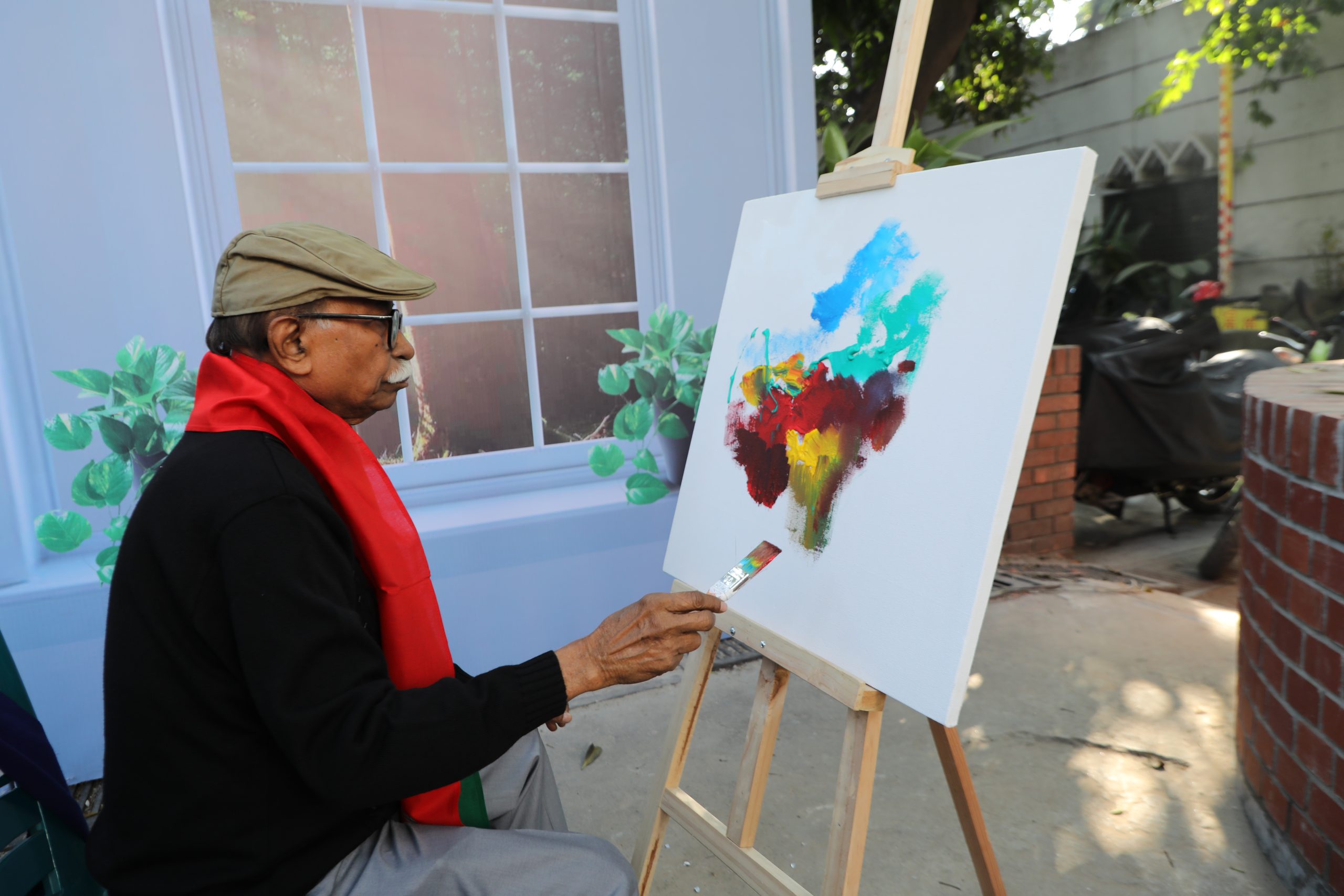 ছাতিমতলায় চিত্র শিল্পীরা ক্যানভাস রাঙান লাল-সবুজের দেশ, দেশের জন্ম দেয়া বীর মুক্তিযোদ্ধা অথবা বিমূর্ত অবয়ব এঁকে।