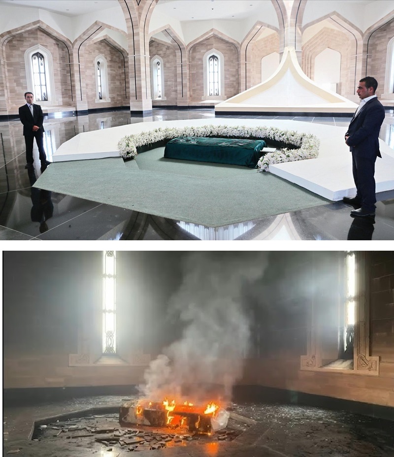 সিরিয়ার ক্ষমতাচ্যুত প্রেসিডেন্ট বাশার আল আসাদের বাবা এবং সিরিয়ার সাবেক শাসক হাফিজ আল আসাদের কবরে আগুন দিয়েছে বিদ্রোহীরা। এই ঘটনার খবর ফলাও করে প্রচারিত হয়েছে বিশ্বগণমাধ্যমে। বুধবার (১১ ডিসেম্বর) ধারণ করা ভিডিও ফুটেজে দেখা গেছে, হাফিজের কবর পুড়ছে, সামরিক পোশাক পরা বিদ্রোহী যোদ্ধা ও তরুণরা সেখানে দাঁড়িয়ে আছে।