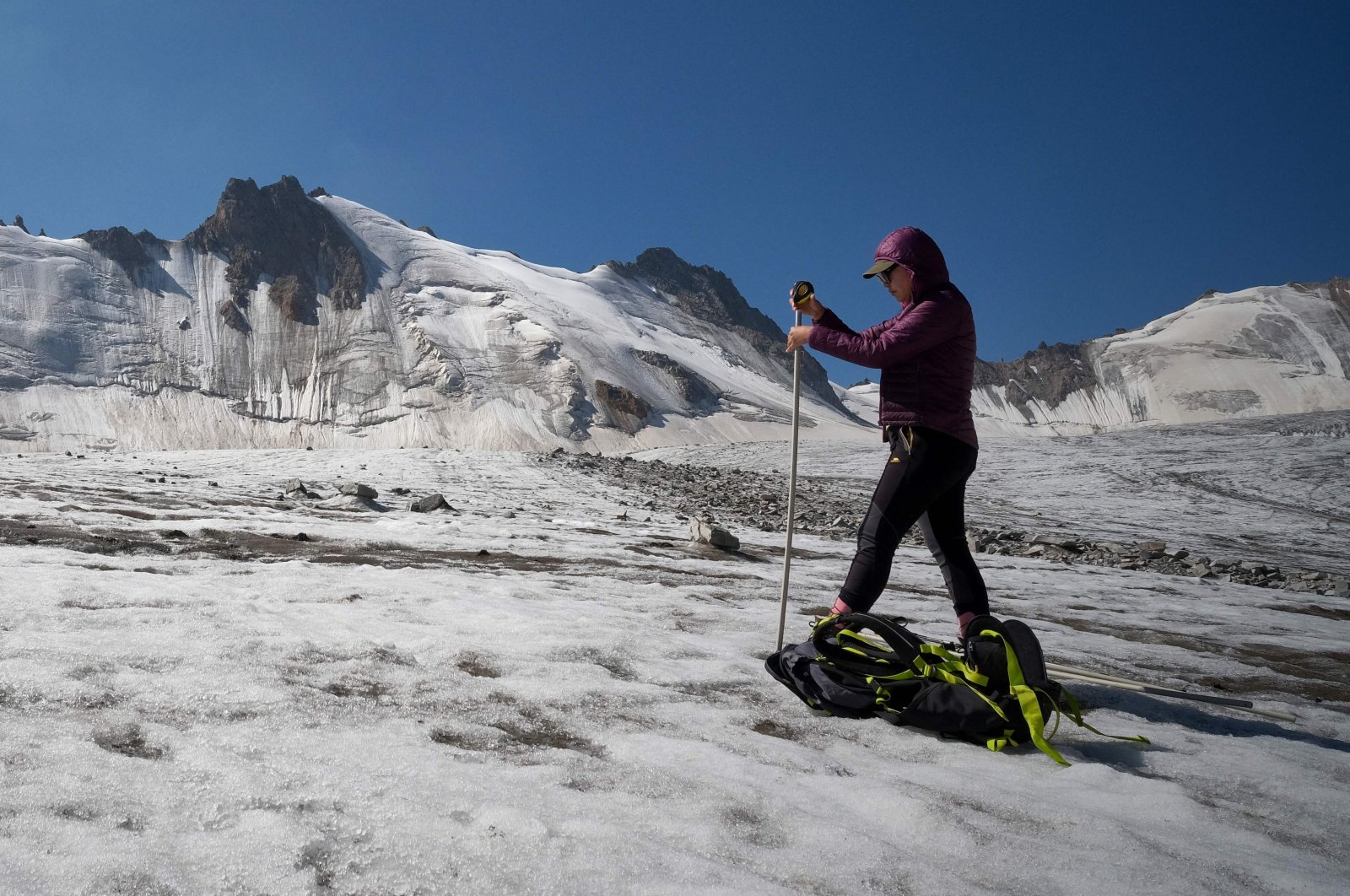 ওমোরোভা একটি পরিমাপক যন্ত্র নিয়ে প্রখর রোদে ধূসর আবরণে ঢাকা বরফের ওপর দাঁড়িয়ে ছিলেন। এরপর গলিত পানির স্রোতের ওপর হাঁটু গেড়ে বসে পড়েন তিনি।  বললেন, ‘আমরা সবকিছু পরিমাপ করছি। তাপমাত্রা ক্রমেই বেড়ে চলছে। ফলে পুনরায় হিমবাহ সৃষ্টি হতে পারছে না।’