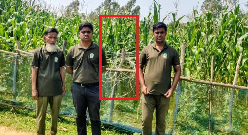 শেরপুরের রাংটিয়া রেঞ্জের অধীন তাওয়াকোচা বিটের পানবর মৌজায় ফসলের ক্ষতি থেকে রক্ষা পেতে অবৈধভাবে বিদ্যুতায়িত জি-আই তার দিয়ে ফাঁদ পেতে