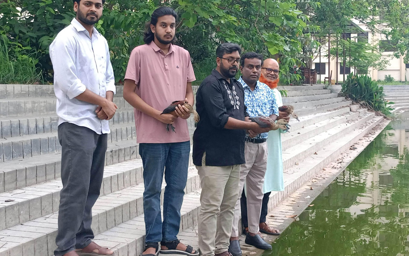 পাবনার বড় বাজার থেকে চারটি বিপন্ন প্রজাতির ‘পাতিসরালি’ হাঁস উদ্ধার করে পাবনা বিজ্ঞান ও প্রযুক্তি বিশ্ববিদ্যালয় (পাবিপ্রবি) ক্যাম্পাসে অবমুক্ত করা