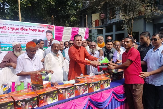 লোকালয় থেকে বন্য হাতি তাড়াতে গারো পাহাড়ে উপকরণ বিতরণ