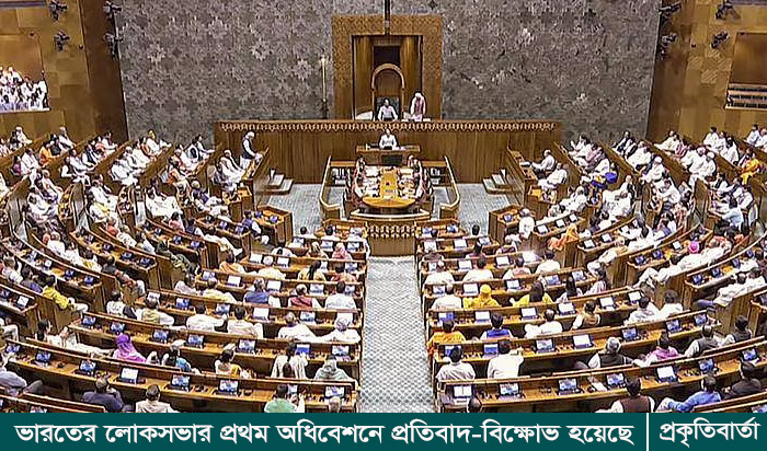 ভারতের লোকসভার প্রথম অধিবেশনে প্রতিবাদ-বিক্ষোভ হয়েছে