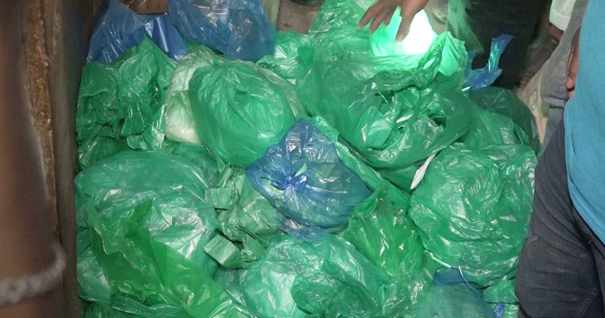 অবৈধ কারখানা থেকে ৫৩০ বস্তা পলিথিন জব্দ, জরিমানা