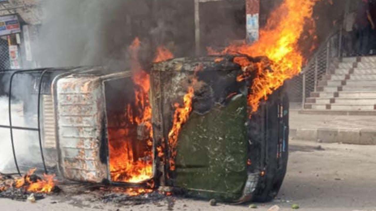 মিরপুরে সেনাবাহিনী ও পুলিশের গাড়িতে আগুন