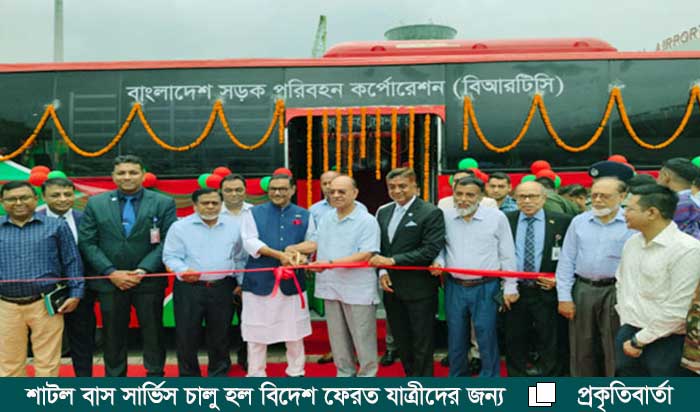 বিদেশ ফেরত যাত্রীদের বিমানবন্দর থেকে যাতায়াত সহজ করতে বিআরটিসি শাটলবাস সার্ভিস চালু করল । আপাতত দুইটি বাস দিয়ে এই সার্ভিস