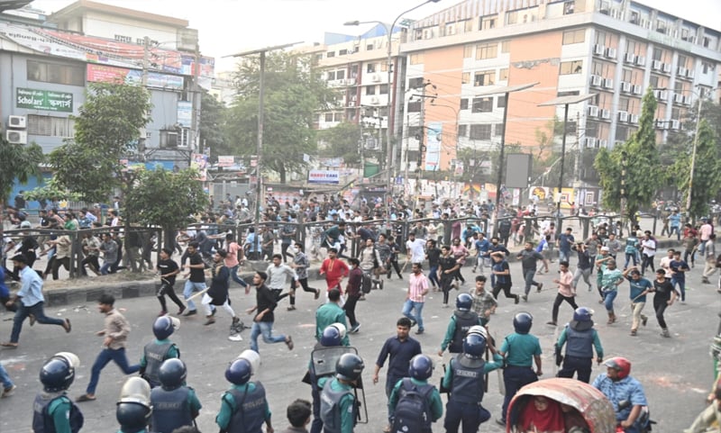 রাজধানীর সায়েন্স ল্যাব মোড়ে ঢাকা কলেজ ও ঢাকা সিটি কলেজের শিক্ষার্থীদের মধ্যে দফায় দফায় পালটাপালটি ধাওয়া ও ইটপাটকেল নিক্ষেপের ঘটনা